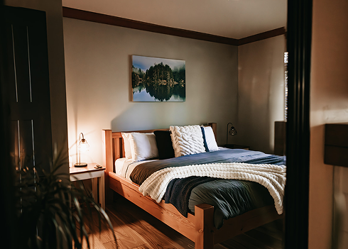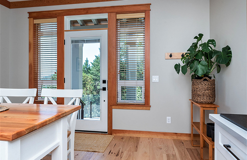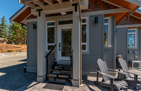 This thoughtfully designed home was built with sustainability in mind and in harmony with its natural surroundings. With countless ways to enjoy the local outdoors, spend your days hiking, biking, swimming, or exploring—then return knowing that all the comforts of home await you, including a king-sized bed, a cozy fireplace, full equipped kitchen, private patio and an outdoor hot tub.